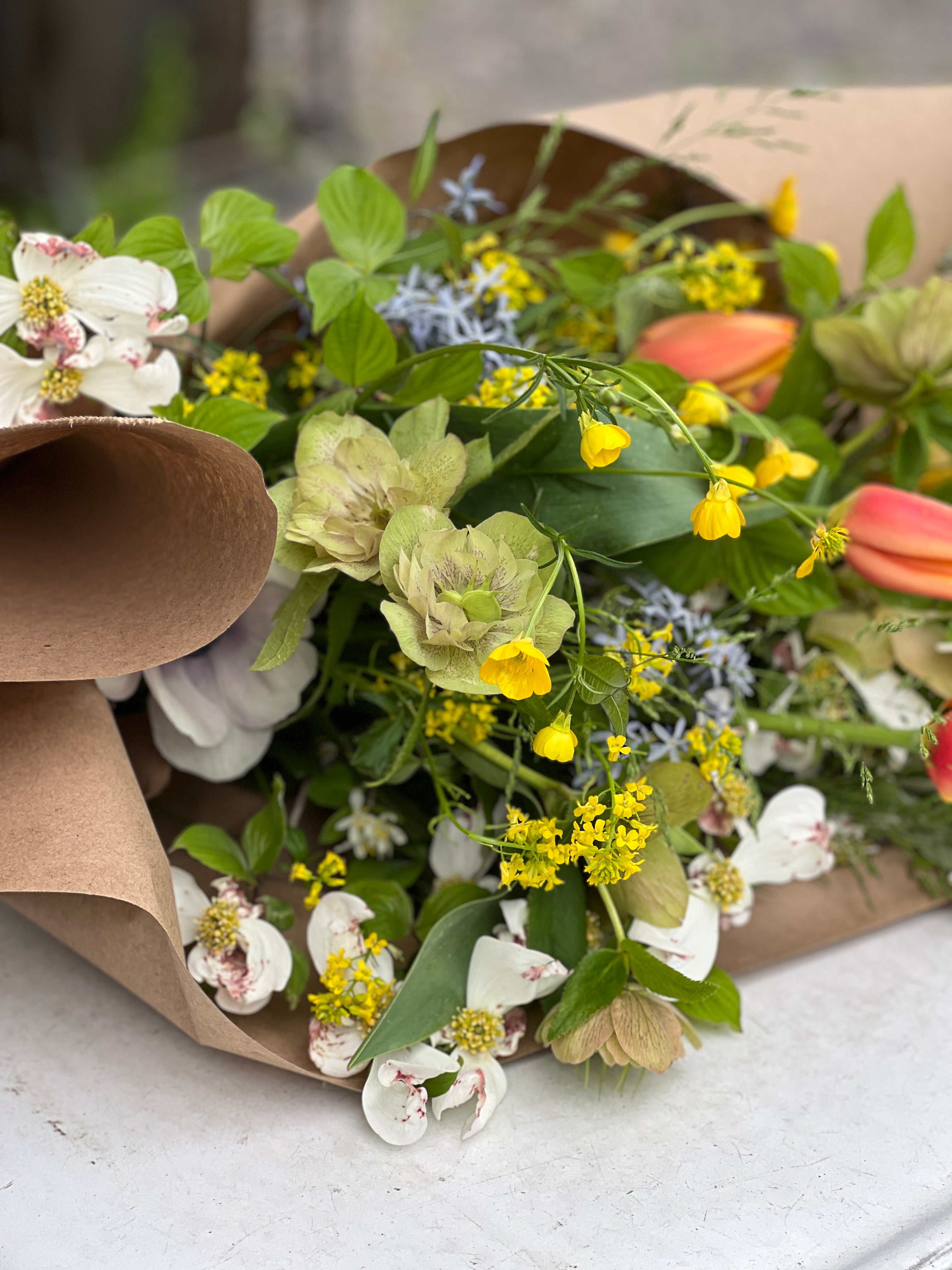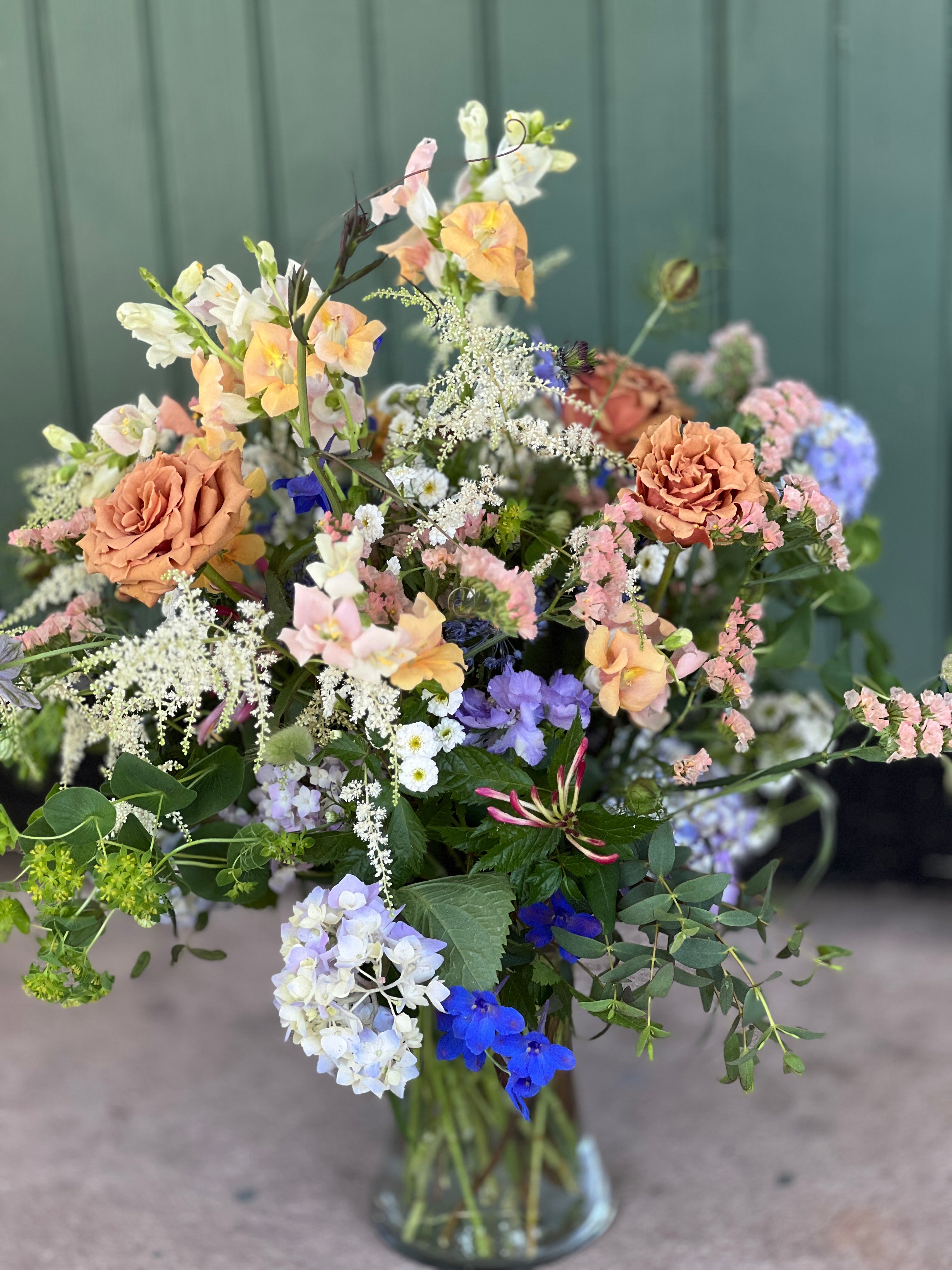 From first seeds to final blossoms, all of New Hope Flora Cottage’s bouquets and arrangements are cultivated right here in our cottage gardens. Our fresh-cut flowers are fragrant, long-lasting, and assembled to astonish.
